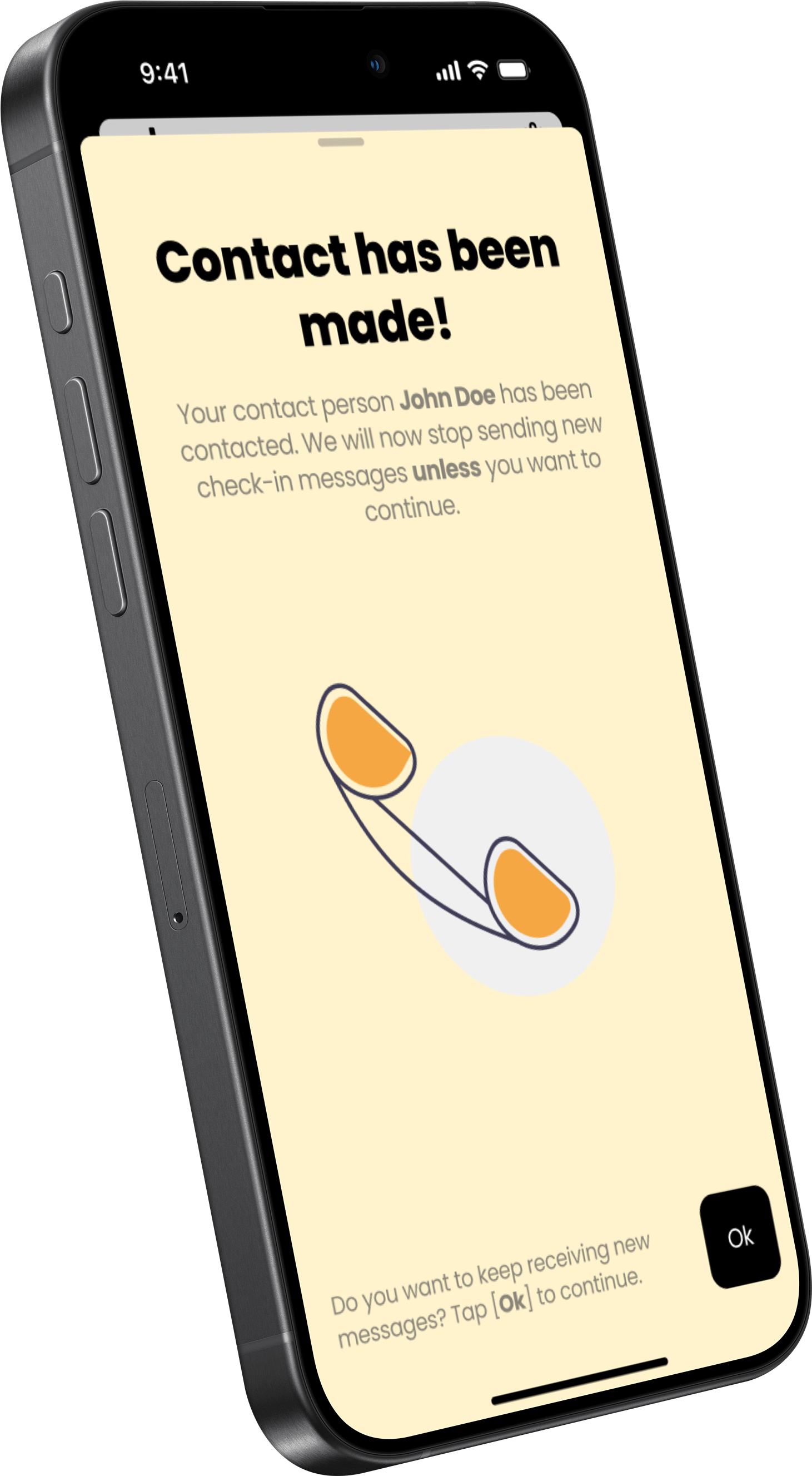 Enter your contact (e.g., friend, relative, or caretaker) and set your check-in frequency: Daily, every three days, weekly, or every two weeks.
